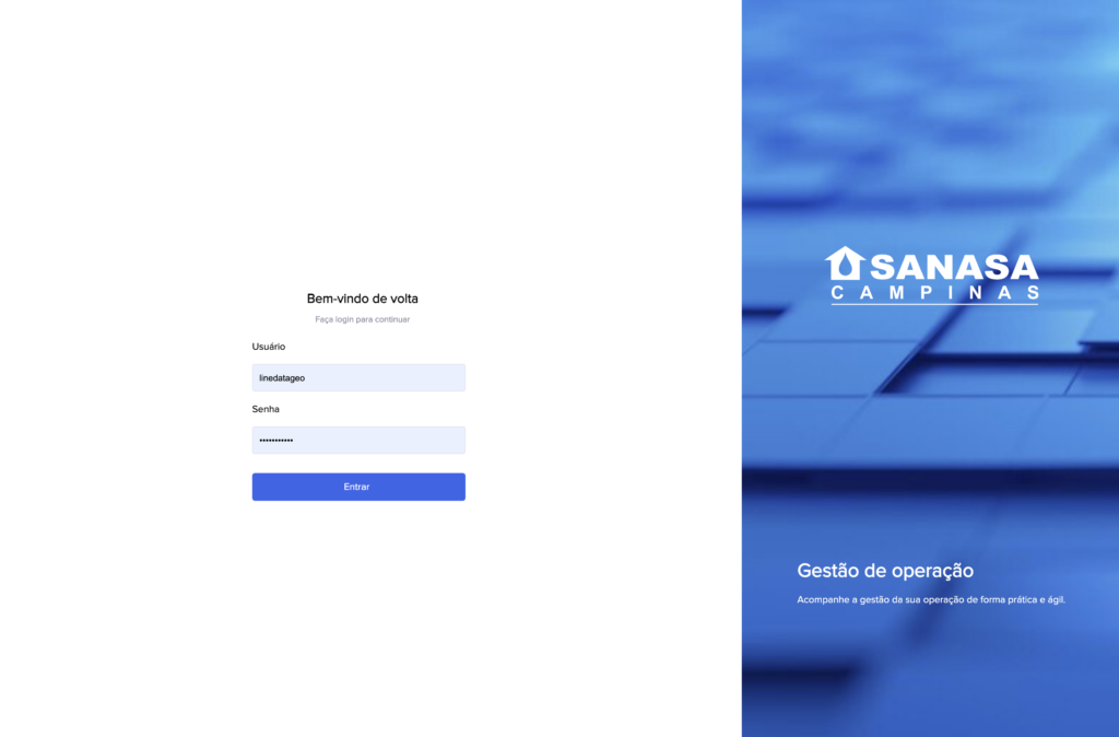 Ao fazer login no Sanegeo, você verá a tela a seguir: